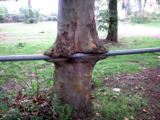 Ich liebe diesen Baum, der sich nicht stören lässt von Menschlichem, sondern es einfach in sein Wachstum integriert.